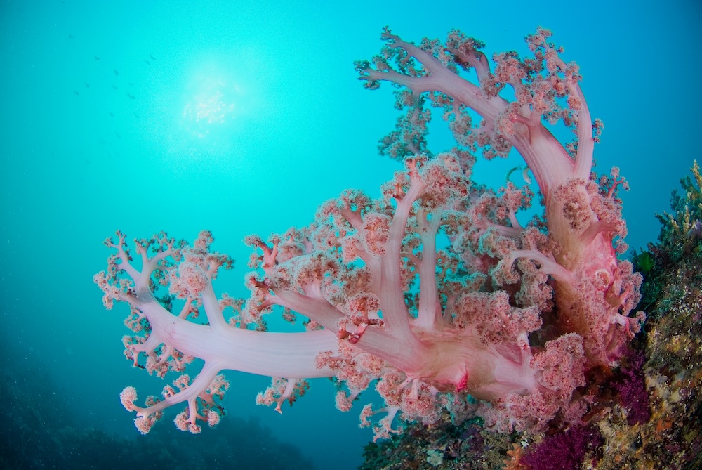 硬い石灰質の骨格をもつハードコーラルとは異なり、体内に微細な骨片(骨格要素)をもつことで、柔軟な構造を保っている
